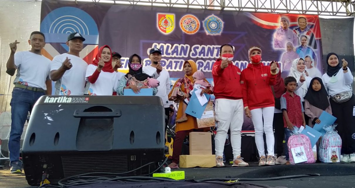 Diacara tersebut, bupati selain melepas peserta jalan sehat berhadiah utama sepeda motor Vixion, bupati juga berkenan menyerahkan santunan kepada enam anak yatim, serta meninjau beberapa stand UMKM dan pedagang kaki lima yang sudah disiapkan lapaknya.
