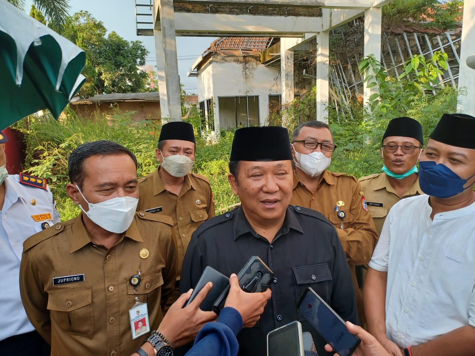 Bupati Ir. H. Hendy Siswanto, ST., IPU., saat memberikan keterangan kepada wartawan, dan mentargetkan tahun 2023 bangunan Kecamatan yang Roboh sudah diselesaikan