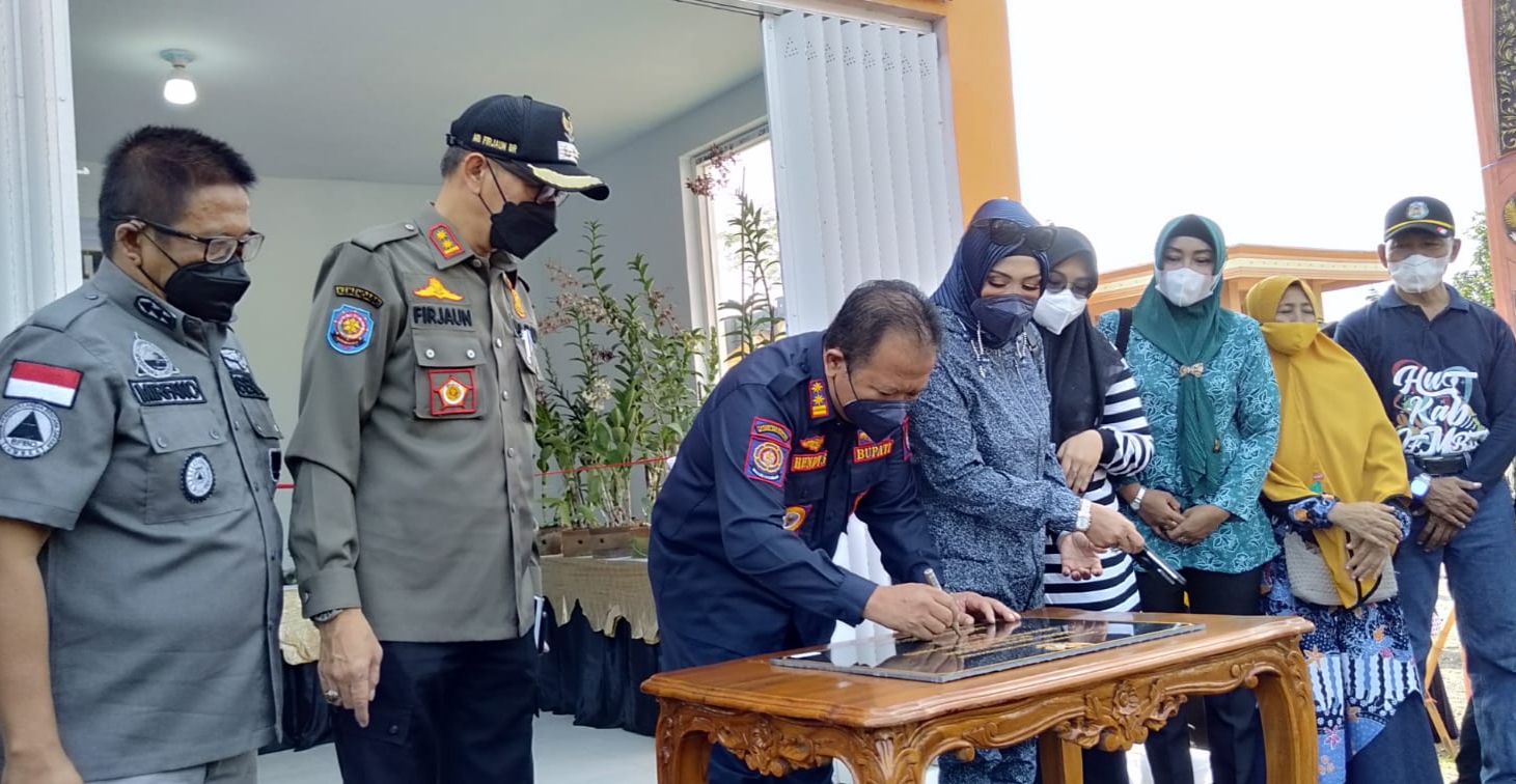 Bupati Jember, Ir. H. Hendy Siswanto, ST., IPU., didampingi Wakil Bupati, Ketua Tim Penggerak PKK Kabupaten, menandatangani prasasti, diresmikannya Bumdes Boss Muda, Desa Panti