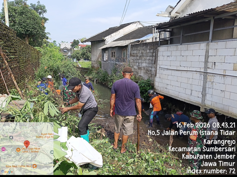 Senin, 16 Februari 2026, Lurah Karangrejo, Lukman, menggandeng 3 Pilar, PUPR SDA Sumbersari, Destana Karangrejo, dan Warga RW 14, beserta seluruh RT dilingkungan RW 14.