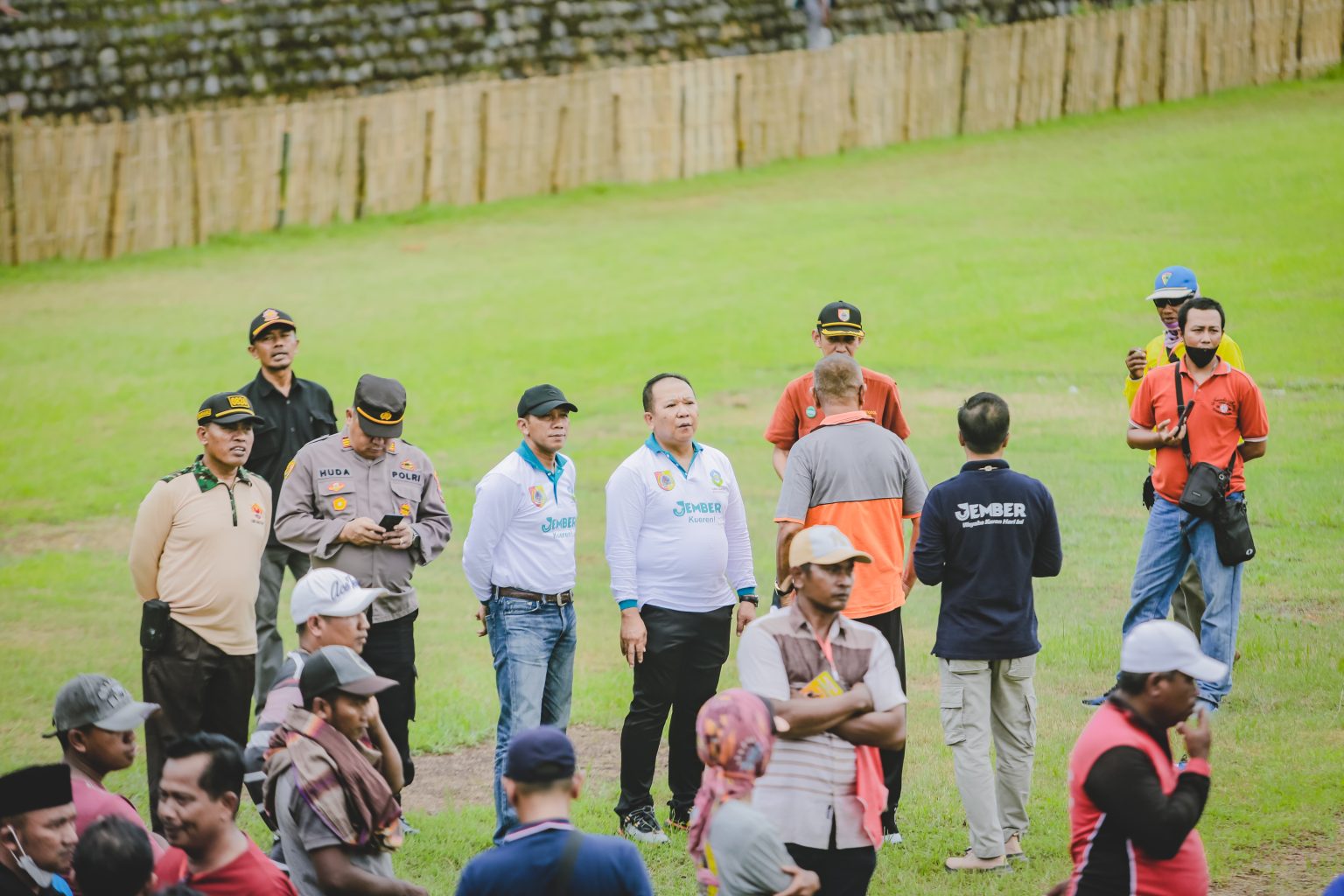 Bupati Jember Hendy Siswanto pun ikut melebur bersama warganya, menonton karapan sapi yang penuh dengan adrenalin.