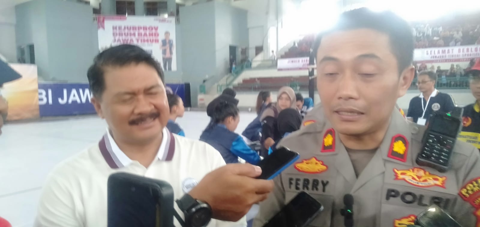 DR.H. Edi Budi Susilo, Kepala Dinas Pemuda Dan Olahraga Jember, di dampingi Kompol Ferry Darnawan, ketua PDBI Jember. “Kita bangga Jember Di percaya sebagai Tempat di selenggarakannya Kejuaraan Drumband Se Provinsi Jawa Timur, semoga lahir juara-juara baru dari Jember”. Foto by : faktajember.