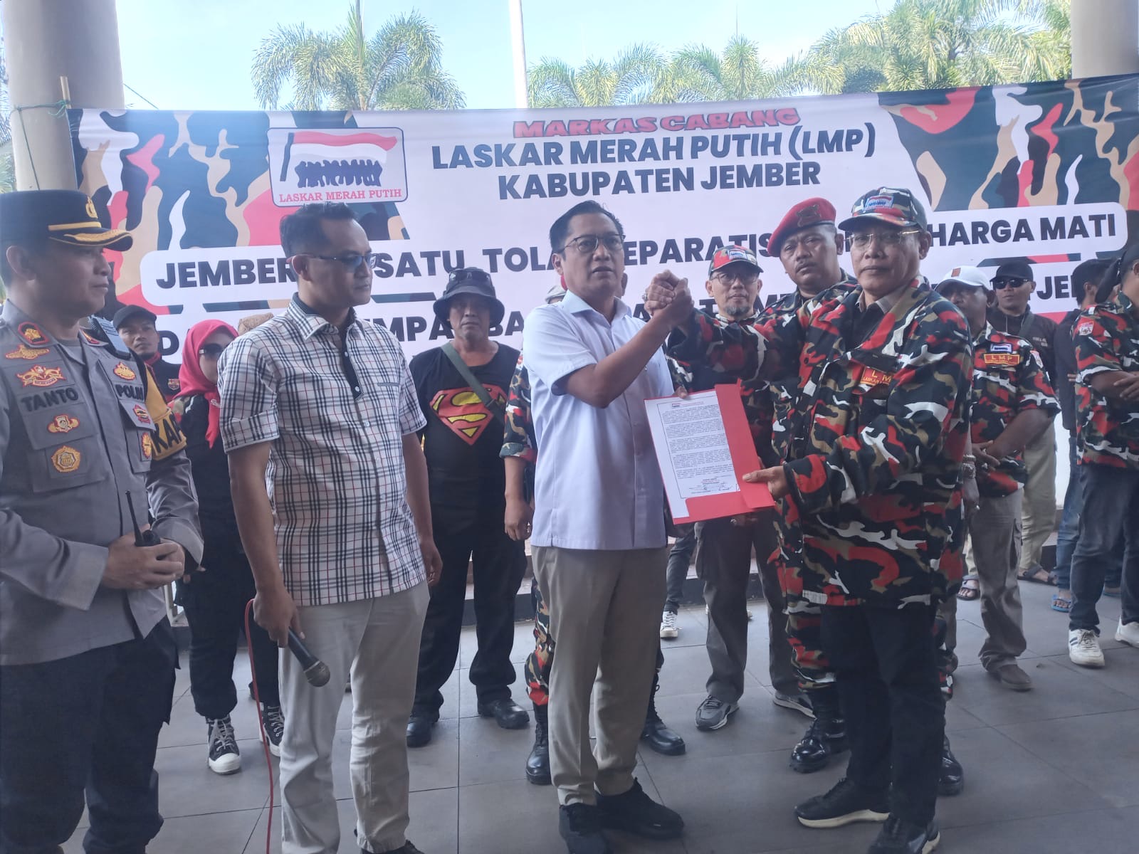 “Hari ini LMP menyatakan Sikap, menolak segala bentuk separatisme dan anarkhis di Negri ini. khususnya di Jember, mari kita rawat perbedaan ini dengan saling menghormati, jaga kedamaian di kota Jember tercinta”, tegasnya.