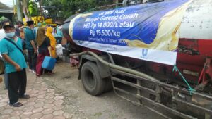 Distribusi dan penjualan minyak goreng curah kepada masyarakat dengan harga Rp 14.000/liter. Sebagai bentuk kepedulian pemkab Jember. Taken By : Dani