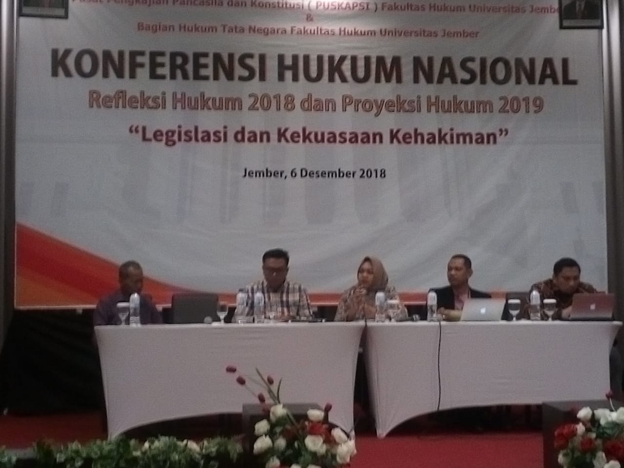 faktajember.com – Pusat Pengkajian Pancasila dan Konstitusi (Puskapsi) Fakultas Hukum Universitas Jember menggelar Konferensi Hukum Nasional: Refleksi Hukum 2018 dan Proyeksi Hukum 2019, di Hotel Aston Confference Centre Jember, Kamis, 6 Desember 2018.